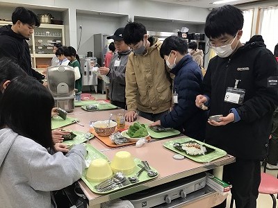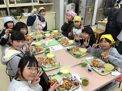 班ごとに『おにぎらず』を作って食べました。ご飯を山盛りにしてみたり、のりを4分割して小さく作ったりと個性あふれるおにぎらずができました。